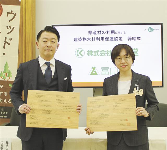 開進堂(高岡市問屋町、山崎真代表取締役社長)は2日、県産材の利用に関する建築物木材利用促進協定を県…