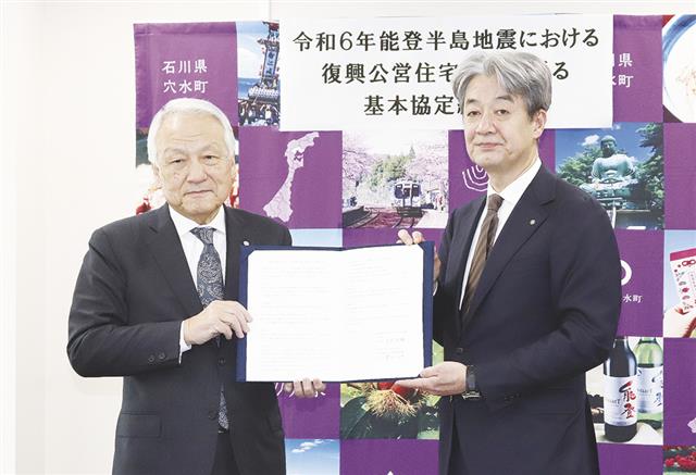 穴水町は5日、石川県復興公営住宅建設推進協議会と同住宅整備に関する基本協定を結んだ。協定では被災者…
