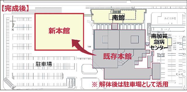 小松市は、向本折町地内にある市民病院の本館建て替えに向け、当初予算案に関連事業費8520万円を計上…